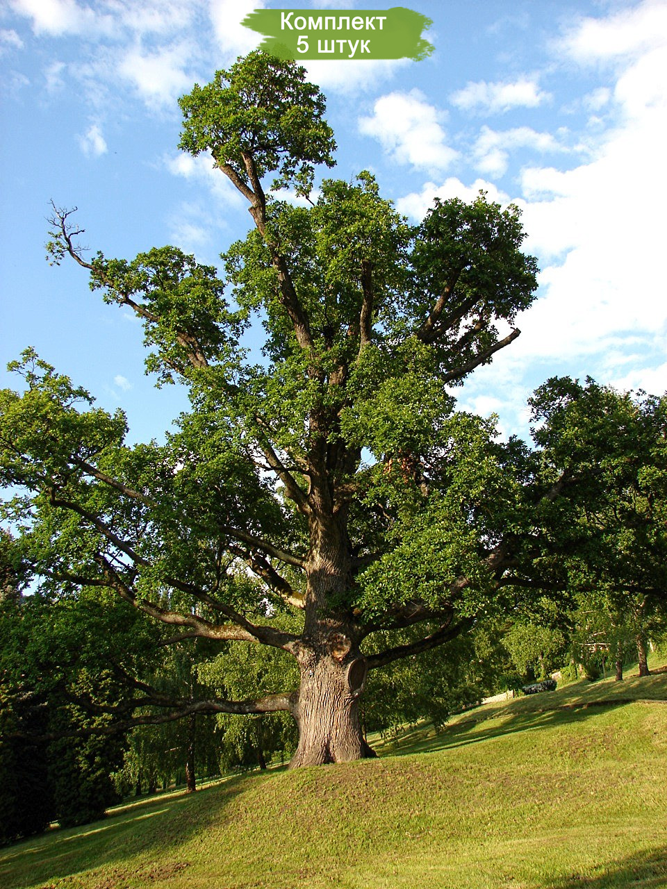 В комплект входит 5 саженцев дуба Европейского высотой от 60 до 100 см.