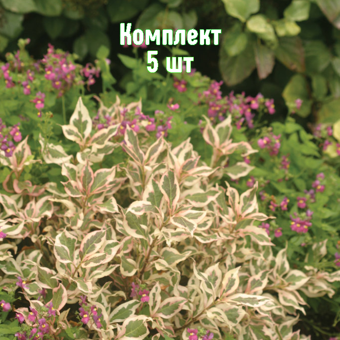 Идеальный выбор для тех, кто ищет выразительный кустарник с декоративной листвой и ярким цветением — берите комплект из 5 саженцев Вейгелы Маргината и экономьте.