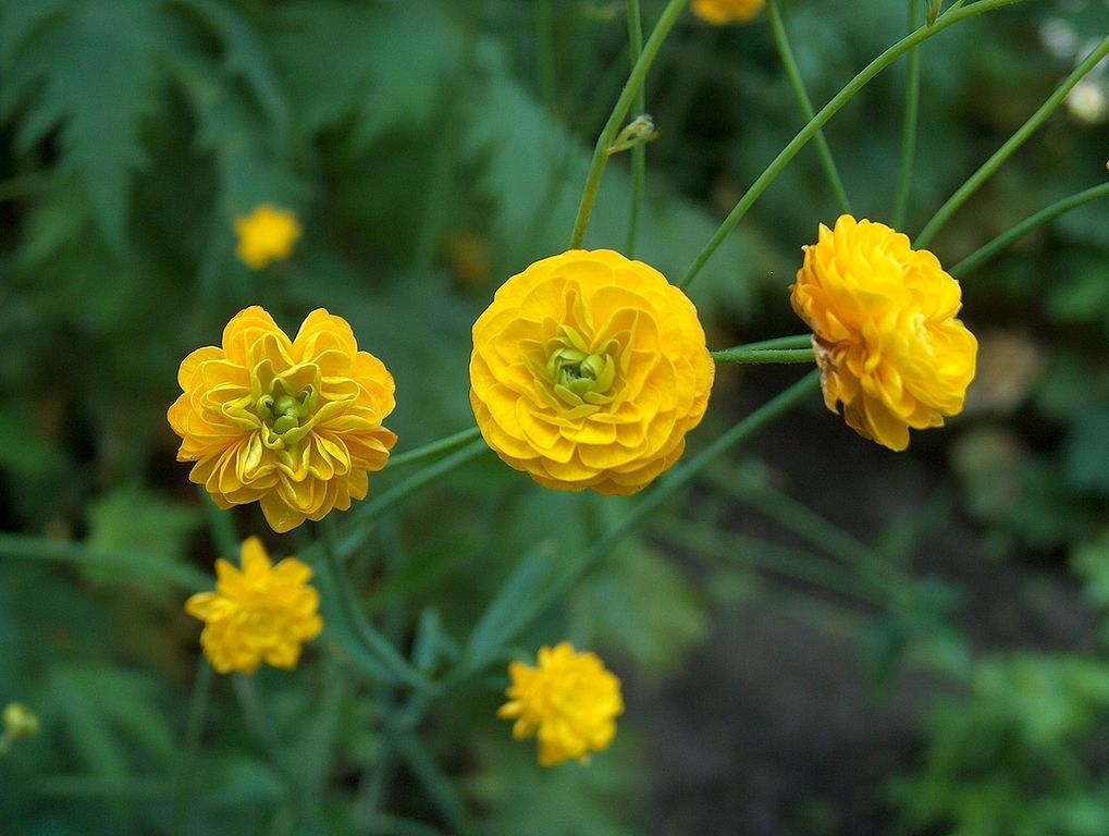 - Цветение: Ранункулюс Акрис радует обильным цветением с мая по июнь, создавая яркие акценты в цветниках и клумбах.
