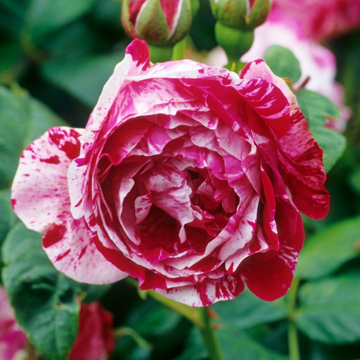 Парковая роза Фердинанд Пишард (Ferdinand Pichard) – это великолепный сорт, который станет настоящим украшением вашего сада. Этот саженец отличается своей неповторимой красотой и изысканностью. Цветки крупные, махровые, с уникальной полосатой окраской, сочетающей розовые и малиновые оттенки. Аромат розы насыщенный и приятный, что добавляет ей еще больше очарования.