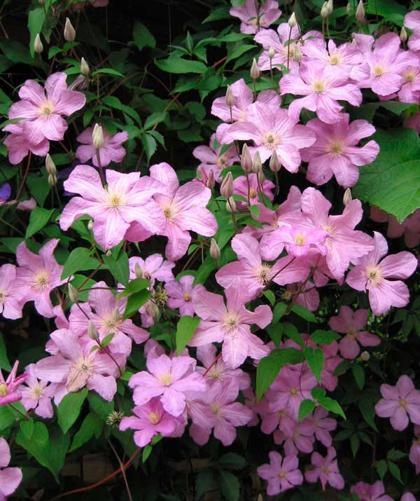 Клематис Комтесс де Бушо (Comtesse de Bouchaud) – это изысканный сорт клематиса, который станет настоящим украшением вашего сада. Этот многолетний вьющийся кустарник отличается обильным и продолжительным цветением, радующим глаз с июня по сентябрь.